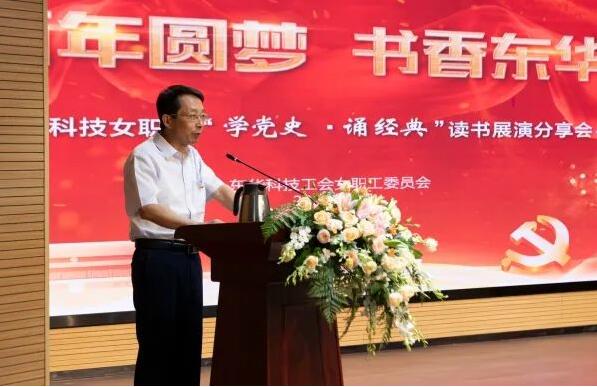 李立新在講話中表示,“書香東華、經典誦讀”系列活動是一次很好的讀書學習過程。通過共同學習黨的百年奮斗史,女職工要繼承和發揚黨的光榮傳統和優良作風,共建書香東華,同筑中國夢。